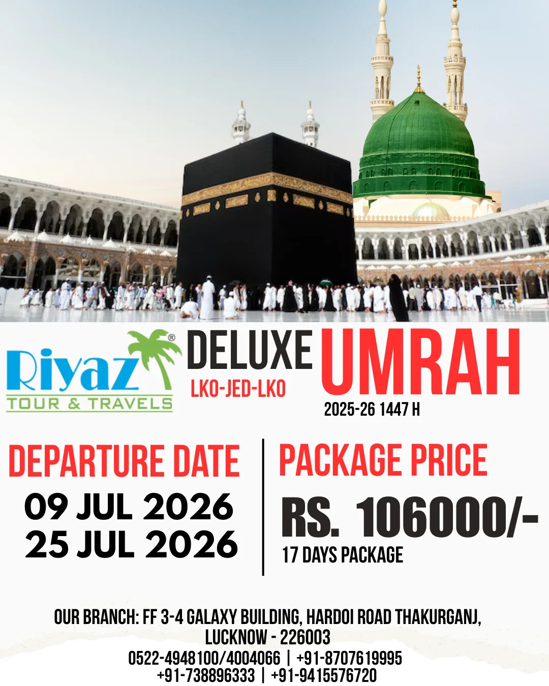 Riyaz Tour and Travels is contracted to some of the largest and most reputable Umrah service provider in Uttar Pradesh with many years experience in providing quality Umrah travel. We are therefore able to provide a quality and reliable service to all Umrah pilgrims from the moment they first make contact with us until they return home.